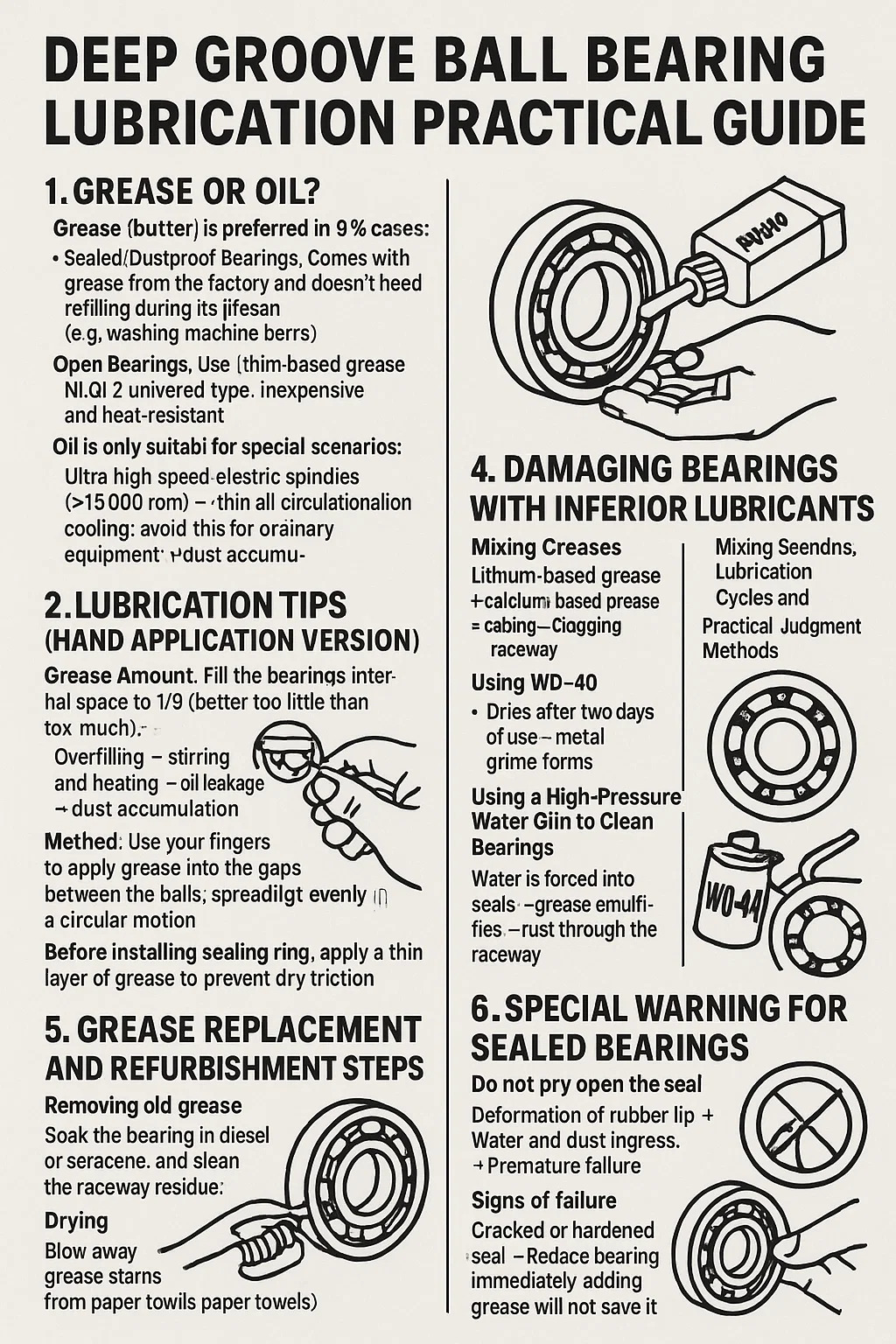 مقدار گریس: فضای داخلی بلبرینگ را تا 1/3 پر کنید (بهتر است خیلی کم تا زیاد):